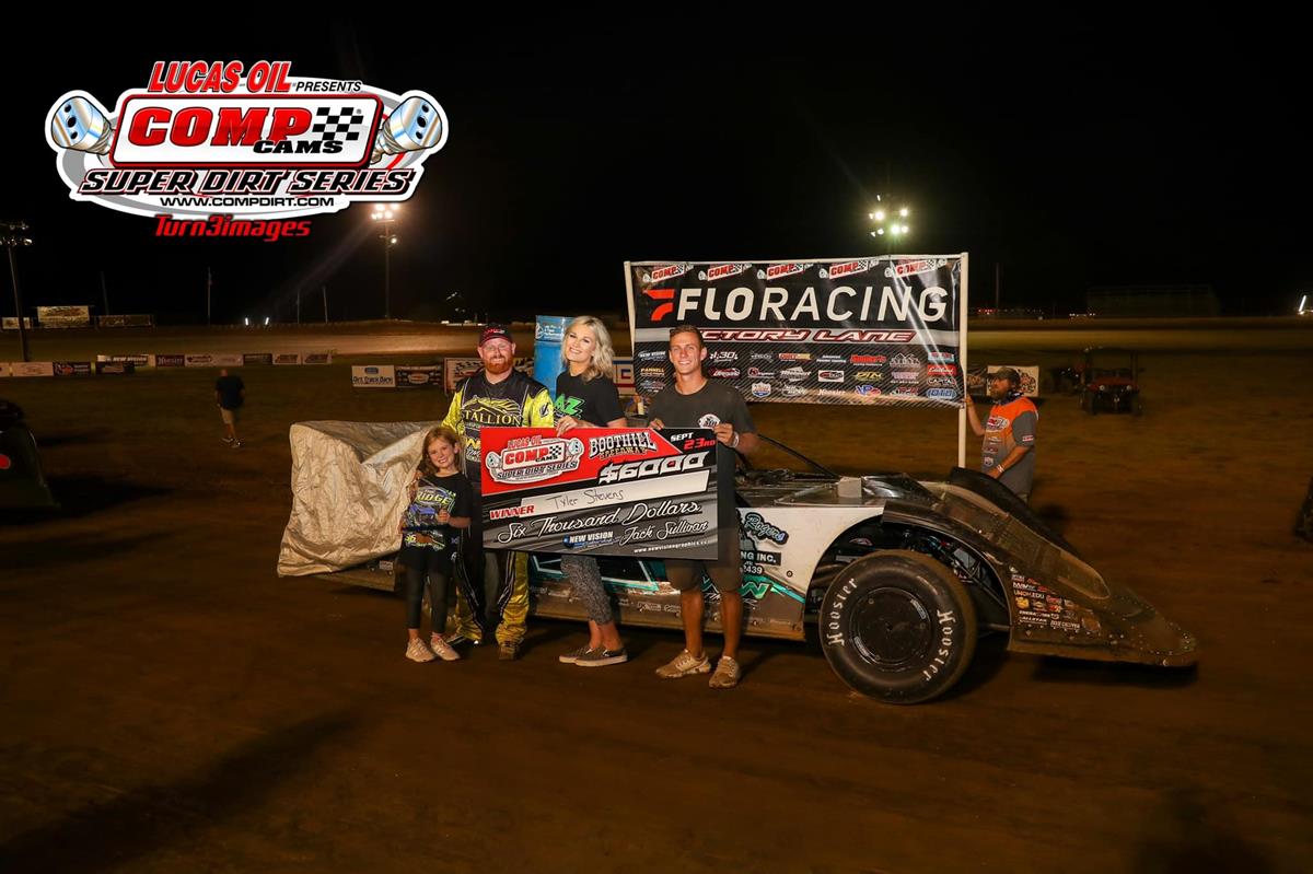 GREENWOOD, La. (09/23/22) – Tyler Stevens picked up the richest win of his career earlier this year at Boothill Speedway with a $10,000 victory in the Ronny Adams Memorial. He found success again at the Louisiana oval on Friday night with a $6,000 COMP Cams Super Dirt Series (CCSDS) presented by Lucas Oil victory in the opening round of the 50th annual Louisiana State Championship at Boothill Speedway.