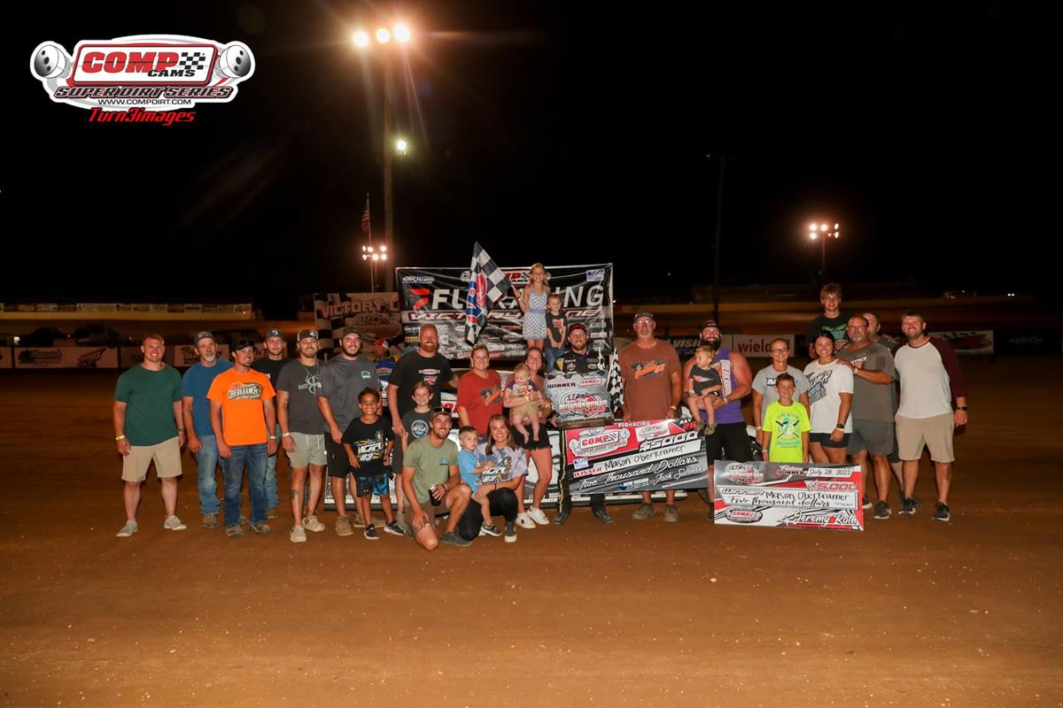 Competing near his Broseley, Mo. hometown, Mason Oberkramer thrilled the local crowd at Poplar Bluff Speedway by sweeping Friday night’s COMP Cams Super Dirt Series (CCSDS) Super Late Model event.