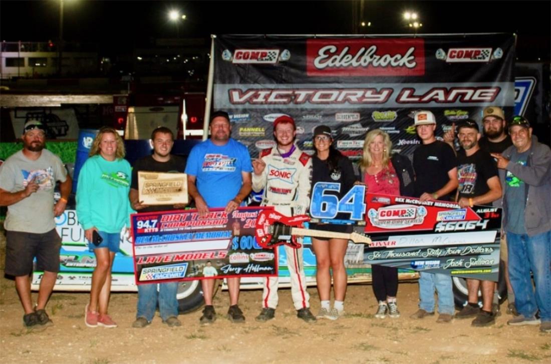 SPRINGFIELD, Mo. (08/31/25) – Capitalizing, when leader Logan Martin jumped the cushion on the 24th circuit, Dillon McCowan took the lead en route to the $6,064 COMP Cams Super Dirt Series (CCSDS) victory in the Rex McCroskey Memorial at Springfield Raceway.